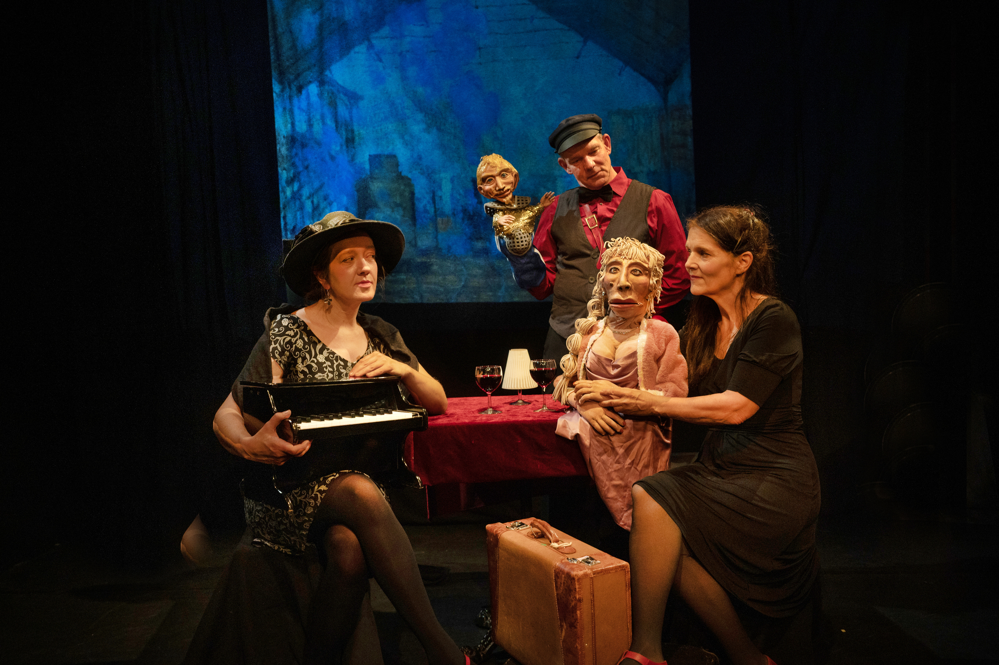 Einmal einfach wegfahren, den Alltag vergessen und für einen Moment das Leben schwänzen. Diese Sehnsucht ist so alt wie das Reisen selbst. Sogar einige unserer Puppen haben sich heimlich aus ihrem Dasein geschlichen und erobern im Nachtzug nach Paris die Gleise der Deutschen Bahn. Die Zufallsgemeinschaft vermeintlich Gleichgesinnter philosophieren im Bistrowagen über das Leben, über Veränderung und Stillstand, den Wunsch, neu zu beginnen, und die Erkenntnis, dass selbst dann, wenn wir verharren möchten, alles einfach weitergeht. Aus ihren Koffern packen die Reisenden ein Kaleidoskop einer phantastischen Welt, gebaut aus alten und neuen Melodien, aus Worten, Bildern und Chansons.